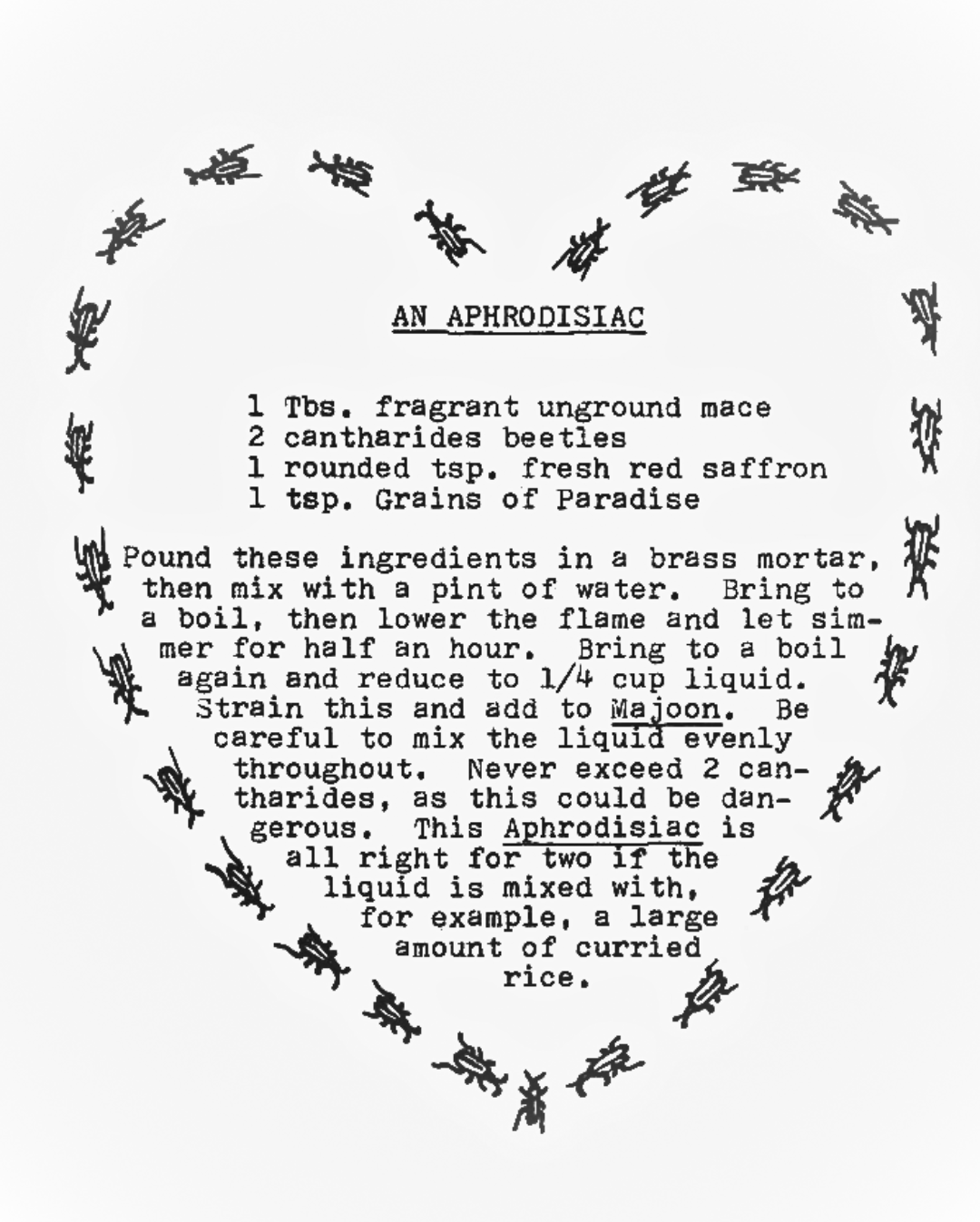 The Cookbook offers Tangier’s traditional dishes of Majoon and the White Cooky, Ghee and Bhang from India, Andalusian candy, and Brion Gysin’s contribution of Hash Fudge—a true taste into America’s sweet staple.